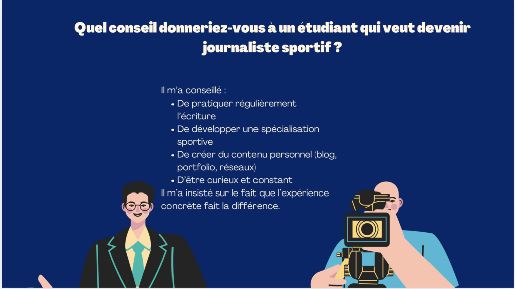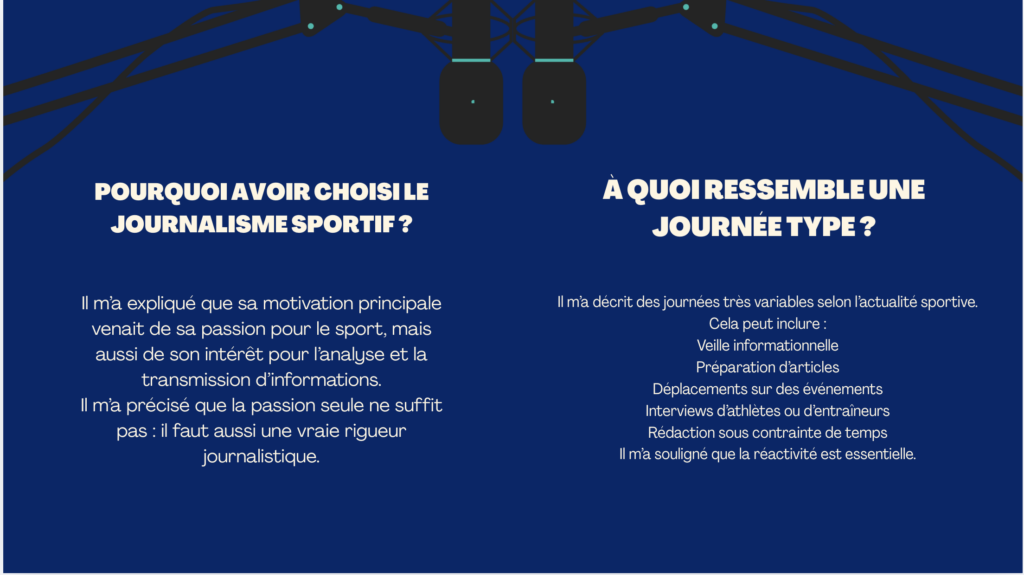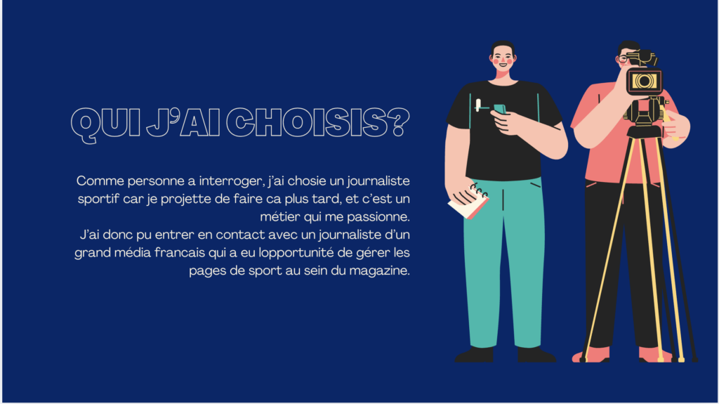 Pour mon interview, j’ai choisie d’interroger un journaliste sportif car c’est mon projet professionnel et que c’est ce qui me représente le mieux.